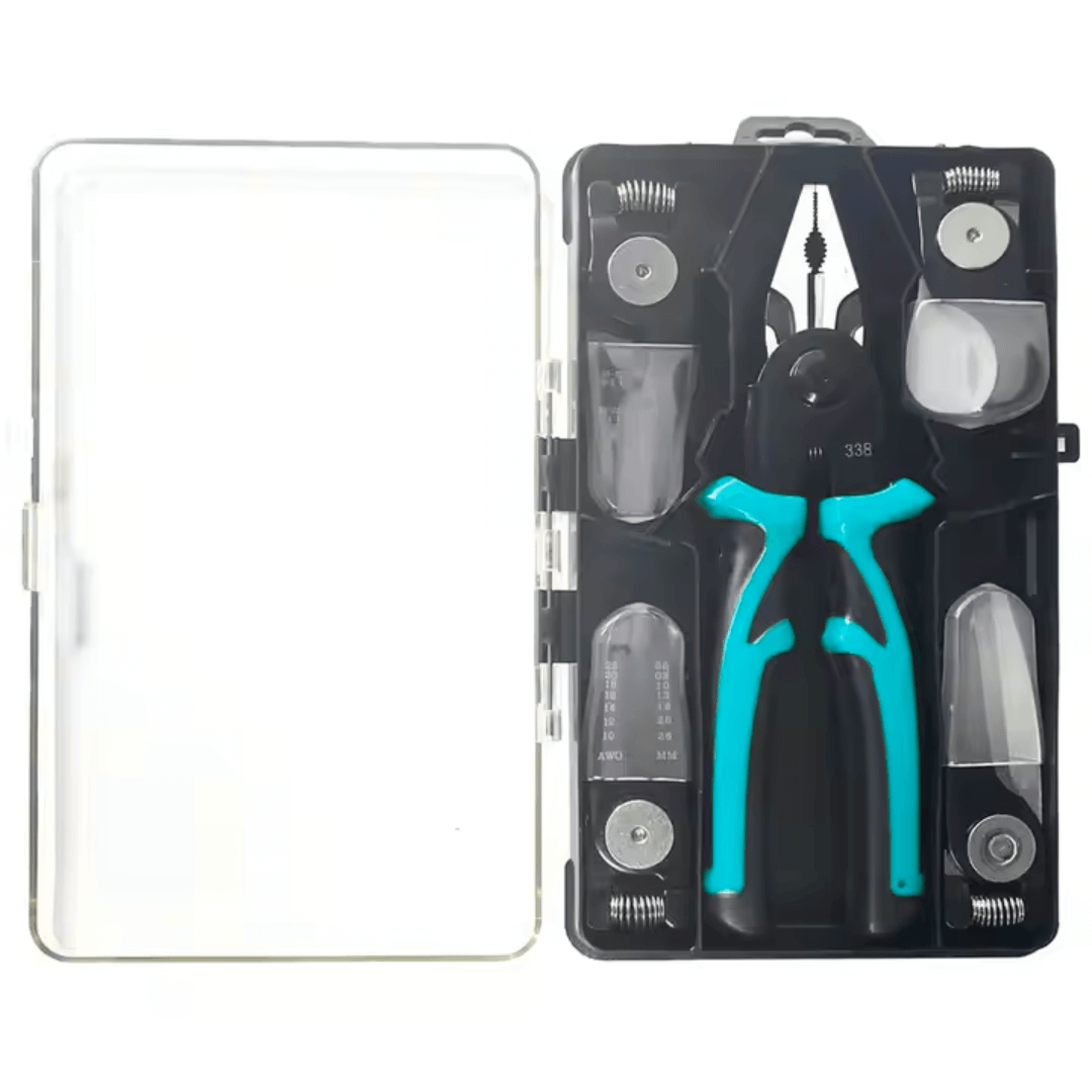 🔁 Accesorios Intercambiables: 5 tipos (pelacables, cortador, crimpadora, tijera, prensadora)