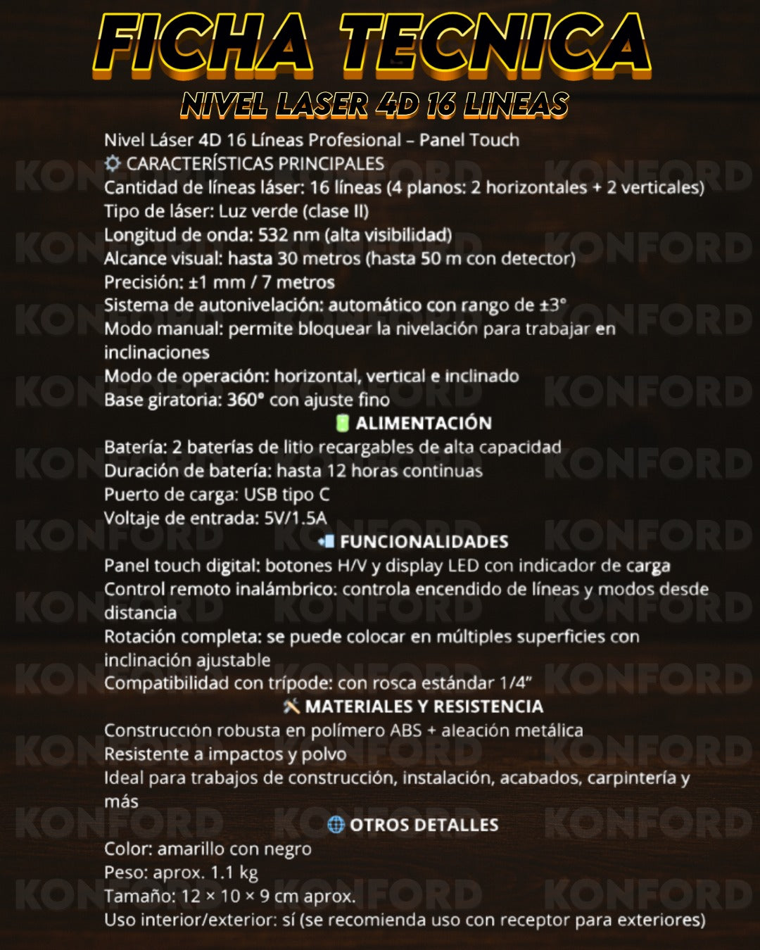 “Olvídate de mediciones imprecisas, este nivel láser 4D es tu aliado para instalaciones y acabados perfectos.”